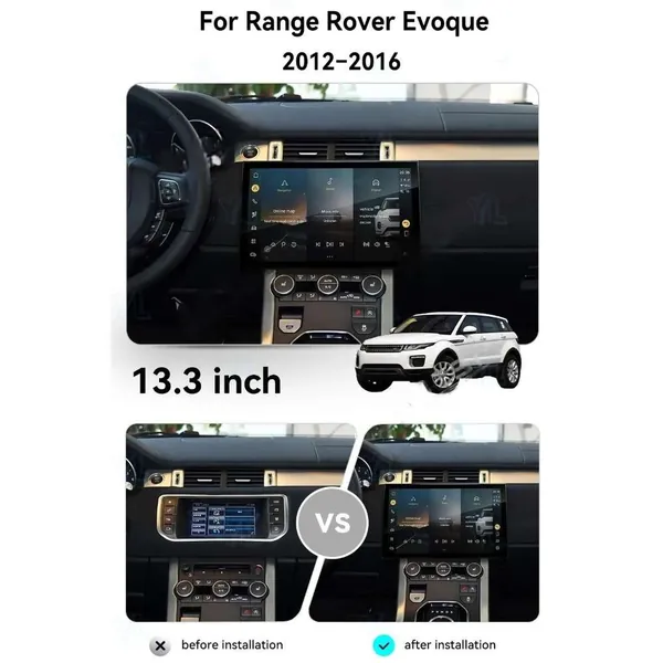 COMPATIBLE WITH RANGE LAND ROVER EVOQUE L538 2012-2016 ANDROID MULTIMEDIA INFOTAINMENT TOUCHSCREEN DVD PLAYER WIRELESS CARPLAY ANDROID AUTO 4GB +64GB 13.3 INCH