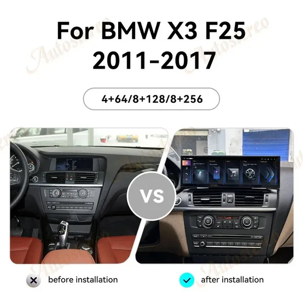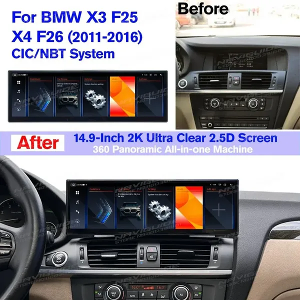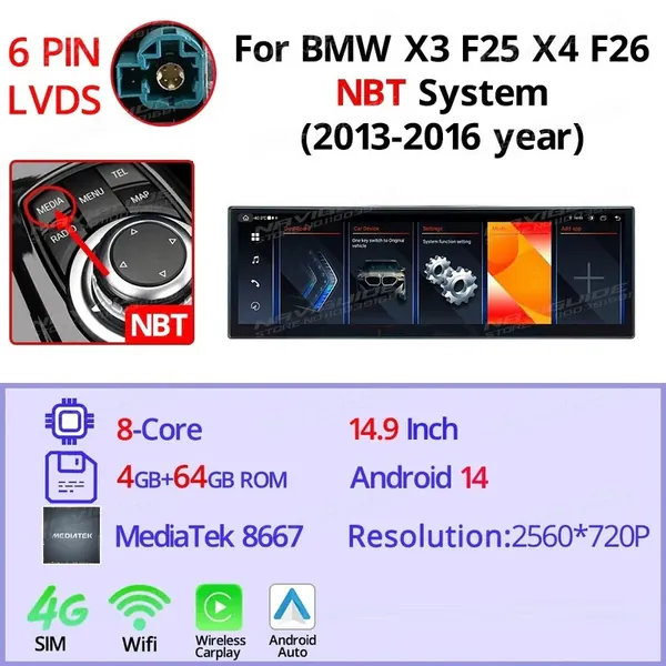 COMPATIBLE WITH BMW X3 X4 F25 F26 2010-2017 ANDROID MULTIMEDIA INFOTAINMENT TOUCHSCREEN DVD PLAYER WIRELESS CARPLAY ANDROID AUTO 4GB +64GB 14.9 INCH NBT