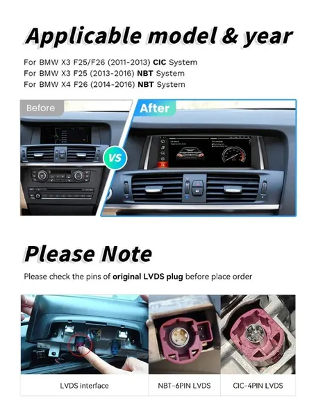 COMPATIBLE WITH BMW X3 X4 F25 F26 2010-2017 ANDROID MULTIMEDIA INFOTAINMENT TOUCHSCREEN DVD PLAYER WIRELESS CARPLAY ANDROID AUTO 4GB +64GB 8.8 INCH NBT