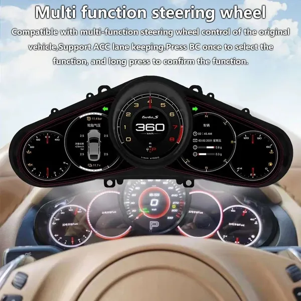 COMPATIBLE WITH PORSCHE CAYENNE 2011-2018 DASHBOARD LCD SPEED O METER ANDROID DIGITAL INSTRUMENT CLUSTER SCREEN SPEEDOMETER DISPLAY CAR 12.3 INCH