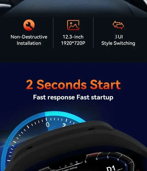 COMPATIBLE WITH BMW 3 SERIES F30 GT F34 4 SERIES F32 2012-2019 DASHBOARD LCD SPEED O METER ANDROID DIGITAL INSTRUMENT CLUSTER SCREEN SPEEDOMETER DISPLAY CAR 12.3 INCH