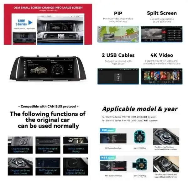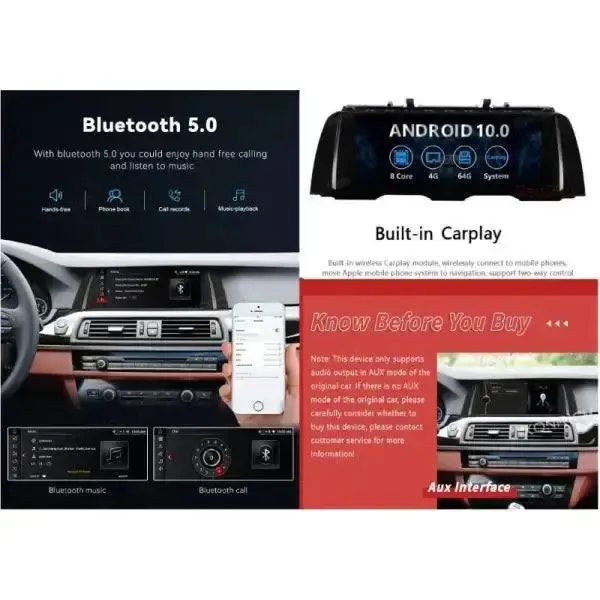 5 Series Android Player DVD Navigation Touch Screen Compatible with BMW 5 Series Android Player DVD Navigation Touch Screen Carplay 5 Series F10 2010-2014 10 Inch 4+64gb