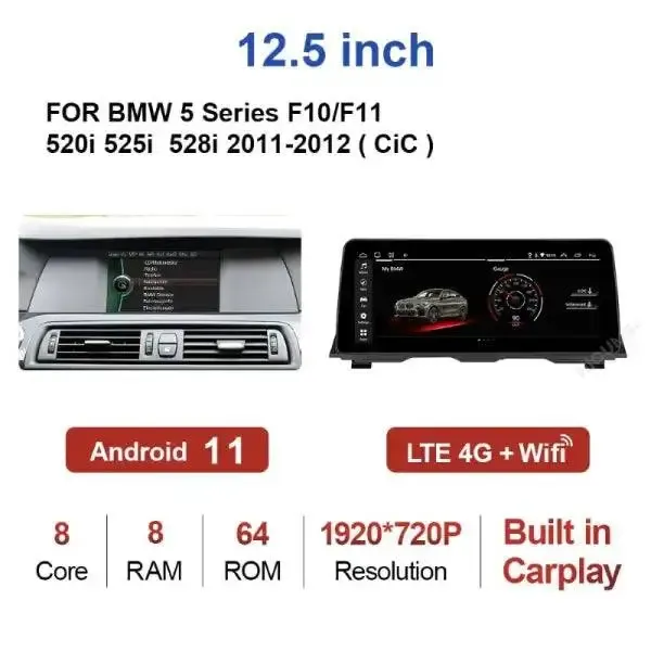 5 Series Android Player DVD Navigation Touch Screen Compatible with BMW 5 Series Android Player DVD Navigation Touch Screen Carplay 5 Series F10 2010-2014 12.3 Inch 4+64gb