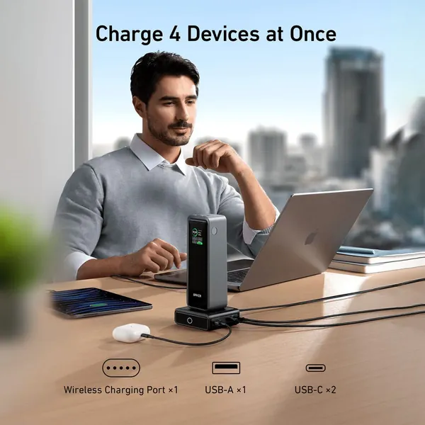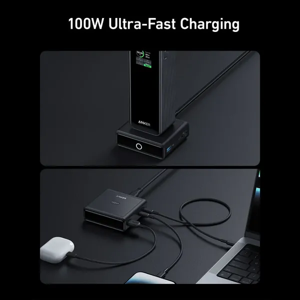 Anker Charging Base, 100W Fast Charging with 4 Ports, for the Anker Prime Power Bank, Compatible with MacBook, iPhone 15 / 15 Plus / 15 Pro / 15 Pro Max / 14 Series, Samsung, Pixel (Power Bank Not Included)