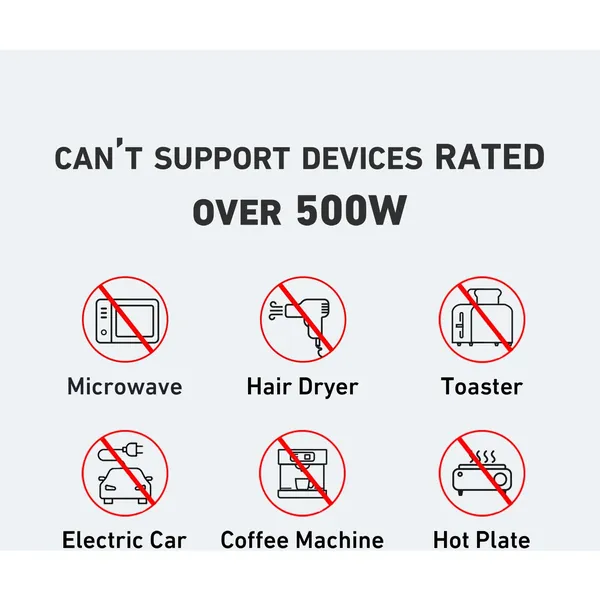 Please note that the power station only supports devices and appliances with a rating less than 500W.