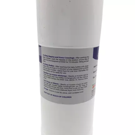 After washing baby nappies, soak the nappies in the solution on one line of water and one tea spoon of ANSI for 15 min. Wring and air them.