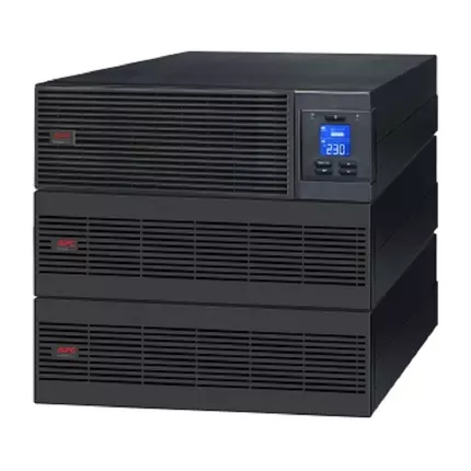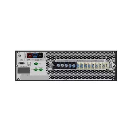 This APC Single phase Easy UPS is designed for IT professionals or network administrators to maintain business uptime and continuity. This 15kVA double-conversion on-line 9U rackmount UPS provides pure sine wave power and extended runtime to support critical electronics during power disruptions. The SRV comes with hard wire 3-wire(1P+N+E) and 5-wire(3P+N+E) inputs, and 3-wire(1P+N+E) outlet. The On-Line UPS has a intelligent card slot for optional Network Management Card (AP9544, SRVSMB001, VGL9601l) that enables network-based UPS monitoring and management. The UPS can connect to EcoStruxure IT or third-party centralized management platforms. The Built-in automatic and manual bypass provide seamless power to the load even in the event of an internal detected fault or error in UPS. The UPS and the built-in lead-acid battery has a 2-year warranty. Ideal for small data centers, manufacturing facilities, computer rooms, network storage devices, telecommunication, and healthcare IT. Features: 15kVA/15kW double-conversion on-line pure sine wave 9U rackmount UPS High operating efficiency in energy-saving ECO mode Add up to 10 external battery packs (SRV120RLBP2-9A) for extended runtime Easy-to-read LCD interface for detailed and accurate information on UPS status Main Input Voltage: 230 V AC, 415 V AC Product or component type: Uninterruptible power supply (UPS) Other Input Voltage: 220 V, 230 V, 415 V Main Output Voltage: 230 V Other Output Voltage: 220 V, 240 V Rated power in W: 15000 W Rated power in VA: 15000 VA Output connector type: Hard wire 3-wire (1P + N + E) 1 Number of rack unit: 9U Range of product: Easy UPS On-Line Provided equipment: 1 USB cable 1 RS-232 configuration cable 3 rack mounting brackets 3 stabilization/wall mounting feet 6 jumper bar 2 external battery pack 1 battery cable user manual Batteries & Runtime Battery type: Lead-acid battery Battery voltage: +/- 120 V Number of battery filled slots: 0 Number of battery free slots: 0 Battery recharge time: 6 h Battery charger power: 2340 W rated Physical Colour: Black (RAL 7010) Height: 39.3 cm Width: 43.8 cm Depth: 69.0 cm Product weight: 157 kg Mounting location: Front Mounting preference: No preference Mounting mode: Rack-mounted USB compatible: Yes Mounting position: Horizontal Input Input voltage limits: 110...300 V half load, 176...300 V full load Number of input connectors: 1 hard wire 3-wire (1P + N + E), 1 hard wire 5-wire (3P + N + E) Network frequency: 40...70 Hz auto sensing Output Maximum configurable power in VA: 15000 VA Maximum configurable power in W: 15000 W Output frequency: 50/60 Hz +/- 3 Hz sync to mains Harmonic distortion: 2 % UPS type: Double conversion online Wave type: Sine wave Efficiency: 95 % (full load) Additional information: Configurable for 220 : 230 or 240 nominal output voltage Bypass type: Internal bypass (automatic and manual) Crest factor: 3 : 1 Environmental Ambient air temperature for operation: 0…40 °C Relative humidity: 0…95 % non-condensing Operating altitude: 0...3000 m Ambient air temperature for storage: -20…60 °C Storage Relative Humidity: 0…95 % non-condensing Storage altitude: 0…15000 m Acoustic level: 65 dBA Heat dissipation: 2503 Btu/h IP degree of protection: IP20