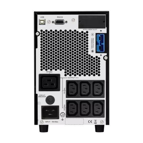 High quality, Double-conversion On-line UPS designed for essential power protection needs even in the most unstable power conditions. Includes: Basic UPS signalling RS-232 cable, CD with software, USB cable, User manual Technical Specifications: Output Max Configurable Power (Watts): 2.4kWatts / 3.0kVA Output Voltage Note: Configurable for 220 : 230 or 240 nominal output voltage Efficiency at Full Load: 88.0 % Output Voltage Distortion: 3 % Output Frequency (sync to mains): 50/60 Hz +/- 3 Hz Sync to mains Other Output Voltages: 220 V, 240 V Load Crest Factor: 3 : 1 Topology: Double conversion online Waveform type: Sine wave Bypass: Internal bypass (automatic and manual) Input Input frequency: 40 - 70 Hz Auto sensing Input voltage range for main operations: 110 - 285 Half load, 160 - 280 Full loadV Number of Power Cords: 1 Efficiency at Full Load: 88.0 % Other Input Voltages: 220 V, 240 V Batteries & Runtime Battery type: Lead-acid battery Typical recharge time: 4hour(s) Nominal Battery Voltage: 72 V Expected Battery Life (years): 3 - 5 Battery Charge Power (Watts): 60 Watts