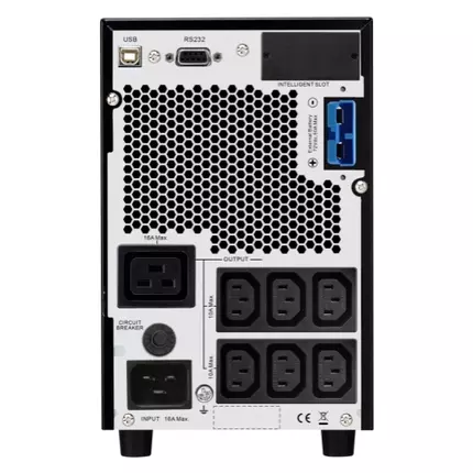 High quality, Double-conversion On-line UPS designed for essential power protection needs even in the most unstable power conditions. Includes: (1) DC cable, Basic UPS signalling RS-232 cable, CD with software, Country-specific detachable power cord, USB cable, User manual Technical Specifications: Output Max Configurable Power (Watts): 2.4kWatts / 3.0kVA Output Voltage Note: Configurable for 220 : 230 or 240 nominal output voltage Efficiency at Full Load: 88.0% Output Voltage Distortion: 3% Output Frequency (sync to mains): 50/60 Hz +/- 3 Hz Sync to mains Other Output Voltages: 220 V, 240 V Load Crest Factor: 3 : 1 Topology: Double conversion online Waveform type: Sine wave Transfer Time: 4 ms typical Bypass: Internal bypass (automatic and manual) Input Input frequency: 40 - 70 Hz Auto sensing Input voltage range for main operations: 110 - 285 Half load, 160 - 280 Full loadV Number of Power Cords: 1 Efficiency at Full Load: 88.0% Other Input Voltages: 220 V, 240 V Batteries & Runtime Battery type: Lead-acid battery Typical recharge time: 5.5hour(s) Nominal Battery Voltage: 72 V Expected Battery Life (years): 3 - 5 Battery Charge Power (Watts): 350 Watts