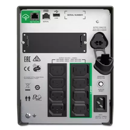 Intelligent and efficient network power protection from entry level to scalable runtime. Ideal UPS for servers, point-of-sale, routers, switches, hubs and other ... Includes: Cat 5 Ethernet cable, Installation guide, USB cable Technical Specifications: Output Max Configurable Power (Watts): 700 Watts / 1.0kVA Output Voltage Note: Configurable for 220 : 230 or 240 nominal output voltage Output Voltage Distortion: Less than 5 % Output Frequency (sync to mains): 50/60 Hz +/- 3 Hz Sync to mains Other Output Voltages: 220 V, 240 V Topology: Line interactive Waveform type: Sine wave Transfer Time: 6 ms typical : 10 ms maximum Input Input frequency: 50/60 Hz +/- 3 Hz Auto-sensing Input voltage range for main operations: 151 - 302 Adjustable, 160 - 286V Other Input Voltages: 220 V, 240 V Batteries & Runtime Battery type: Lead-acid battery Typical recharge time: 3hour(s) Replacement Battery: RBC6 Expected Battery Life (years): 3 - 5 RBC Quantity: 1 Battery Charge Power (Watts): 88 Watts