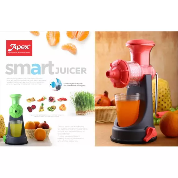 Have a healthy start to your day with the Apex smart juicer. While its compact form makes it easy to store or carry wherever you go, its unique design with filtration capability ensures that it extracts maximum juice from fruits and vegetables regardless of how hard or juicy they are. The Apex smart juicer clamps to any smooth surface and provides you instant access to juice without electricity. It comes with a custom-fit juice collector and lets you enjoy a cup of juice of your favorite citrus fruits such as oranges, watermelon, pineapple, and many more. This juicer can also be used to prepare fresh and healthy juices from a wide range of greens including spinach, wheatgrass and more. As it eliminates pulp and seeds using the stainless steel filter, you can safely use seeded fruits and vegetables such as pomegranate, tomato and more. Shop for this fruits and vegetable juicer and prepare fresh and healthy juices in an effortless manner.