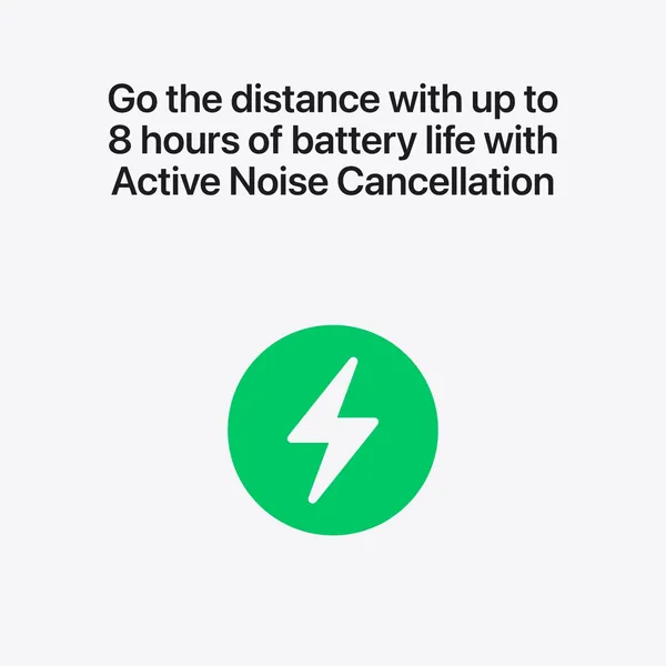 Extended Battery Life — Get up to 8 hours of listening time with Active Noise Cancellation on a single charge.8 Or up to 10 hours in Transparency using the Hearing Aid feature.9