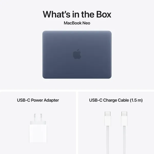 Choose from Silver, Blush, Citrus or Indigo, each with a colour-coordinated keyboard to complete the look. And with a durable aluminium design, MacBook Neo is built to go wherever you go.