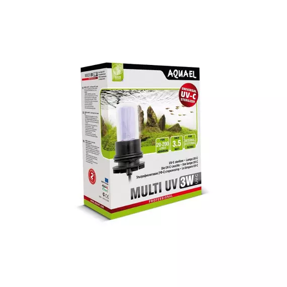 MULTI UV 3W Additional maintenance not required UV lamp life of 8000 hours Perfect for small and medium-sized aquarium tanks Eliminates problems with water blooming Prevents the growth of algae as well as fish diseases. MULTI UV 3W – a sterilizer designed for use with FAN2, FAN3, VERSAMAX (FZN) and MINIKANI filters. Its most important element is a chamber containing a 3-watt light bulb emitting UV-C light that kills algae, protozoa and bacteria. The chamber should be installed inside of one of the four modules enclosed with the kit, each of which corresponds to the relevant type of the filter. The water flowing through the MULTI UV 3W chamber is both purified and cleared from the microorganisms dangerous for fish and regains full clarity.