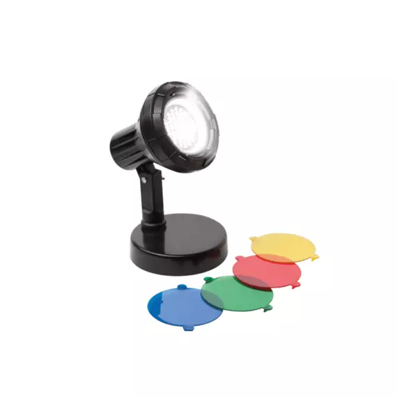 The WATERLIGHT LED PLUS set includes four colour filters (yellow, green, blue and red),