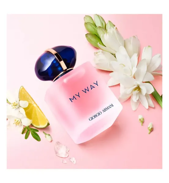 Discover My Way Floral, Giorgio Armani's new feminine fragrance. A fresh and blooming bouquet, enhanced by bright citruses, encapsulating authentic encounters around the world. Live, as if it was the first time.