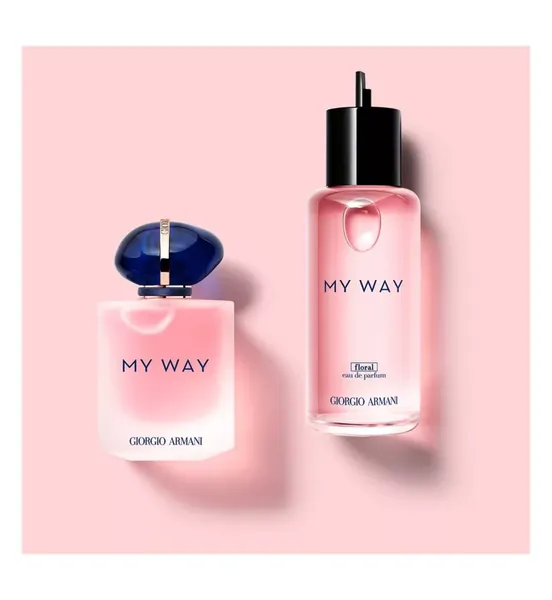 My Way Floral is an invitation to a journey of self-discovery, capturing the life-affirming feeling of a first encounter, with a refreshing sense of exhilaration that makes those who wear it blossom. A new fresh, luminous, and blooming bouquet enhanced by bright citruses, encapsulated in a new, frosted glass bottle, whose finish creates a veiled look, revealing the fragrance's delicate pink juice. The scent opens with zesty notes of Green Mandarin and the brightness of Orange Blossom enfleurage in bitter orange oil. In the heart, the carnal tuberose is magnified by the rich and suave delicacy of Neroli oil. At the base of the fragrance, the Vanilla Bourbon Infusion reveals an enveloping facet when magnified with white musks. As a result of My Way's innovative refill system, responsible and sustainable ingredients sourcing, and biodiversity protection through forest preservation programs, MY WAY FLORAL achieves carbon neutrality. I AM WHAT I LIVE.