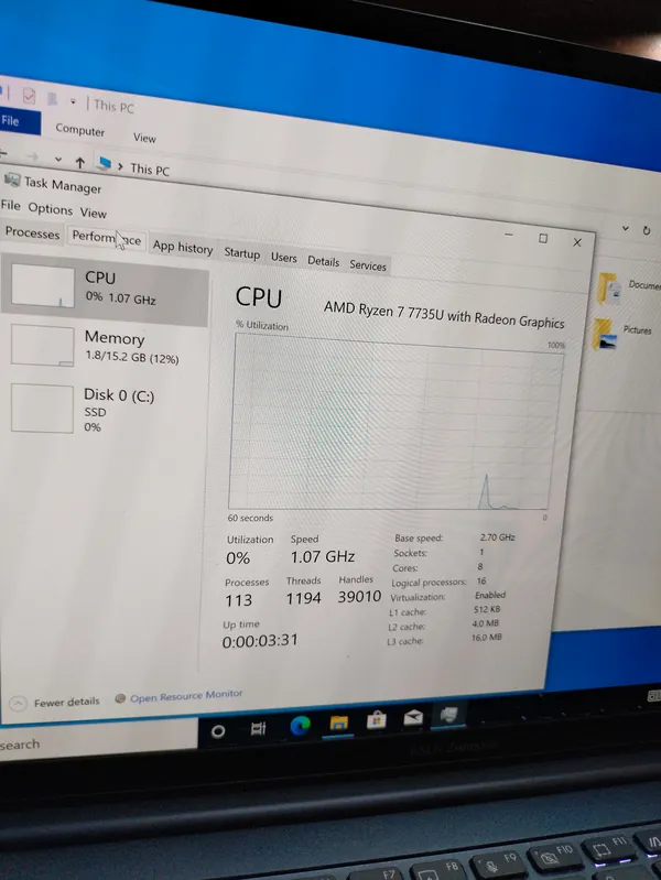 ASUS zenbook !5- AMD Ryzen 7 2.7ghz- 512gb SSD 16gb ram -integrated Keypad Light Radeon Graphics- 8 Cores