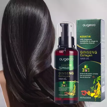 Auggeas Ginseng Collagen Hair Oil is designed to stimulate hair growth and improve hair health.