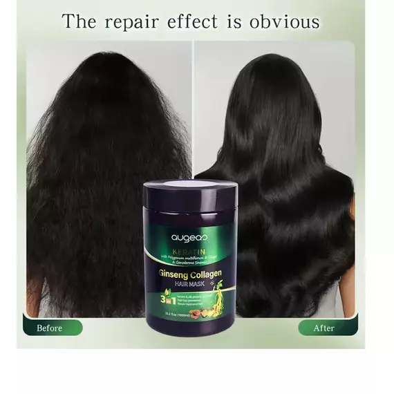 Augeo Keratin & Ginseng Collagen Hair Mask, designed to nourish and revitalize hair. Key features and benefits include: