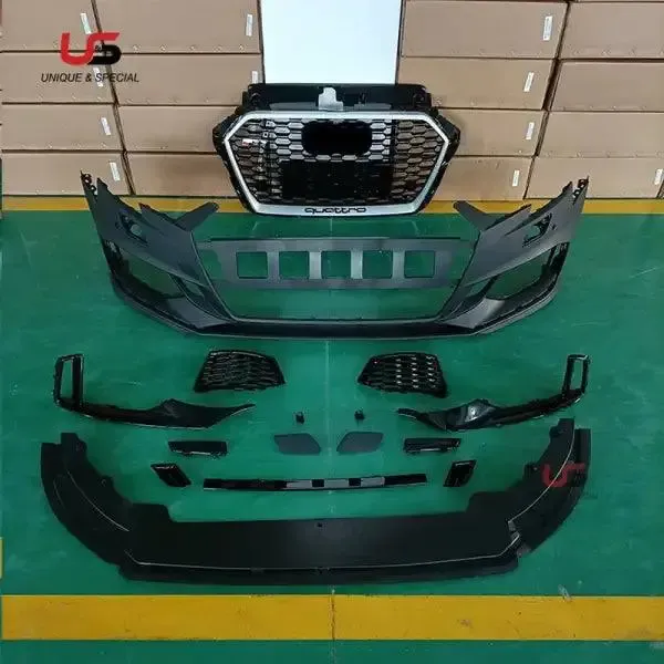 Auto Body Kit Modified to RS3 Style Front Bumper with Grille PP Material Compatible With Audi A3 2017-2019