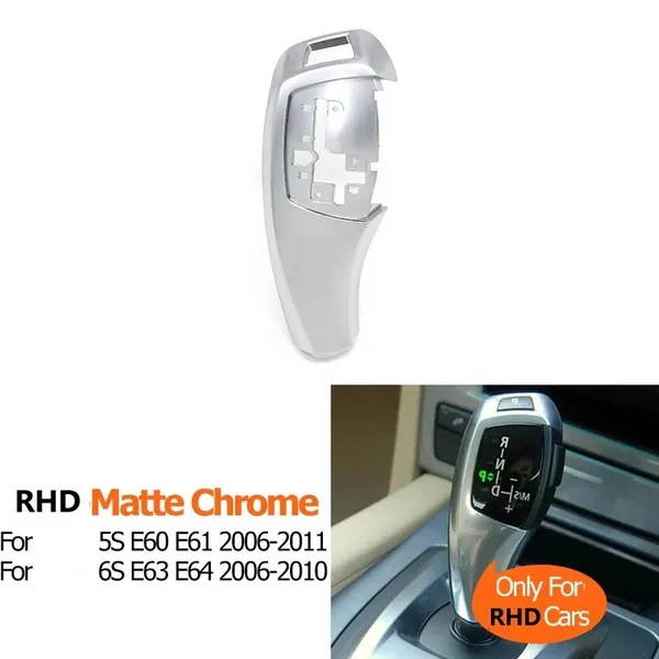 Automatic Gear Shifter Knob Selector Shift Lever Cover Silver Chrome 61319155449-1-1 CC-7811 Compatible With Bmw 5 Series E60 E61 2006-2011 6 Series E63 E64 2006-2010