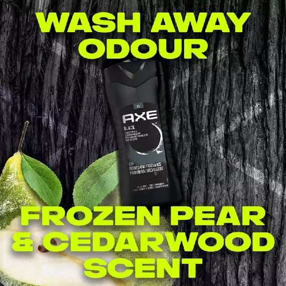 - 3 in 1, head to toe wash: Axe Black is a 3 in 1 moisturizing body, face and hair wash. An all-in-one grooming kit for men’s daily bathing routine in a shower gel bottle.