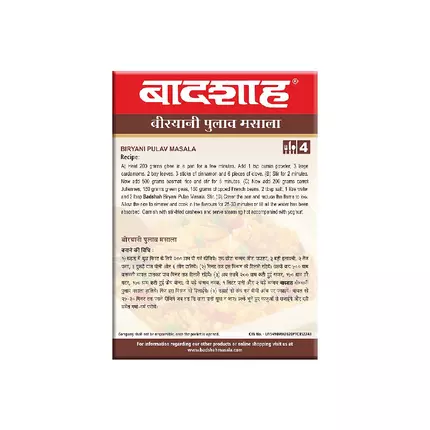 You can add Biryani-pulav-masala for an extra special aroma blend to any of your rice dishes. This is one of the tastiest products you will ever have the opportunity to try. You can sprinkle Badshah Biryani-pulav-masala on top of just about anything, but it tastes especially great on top of a simple biryani.