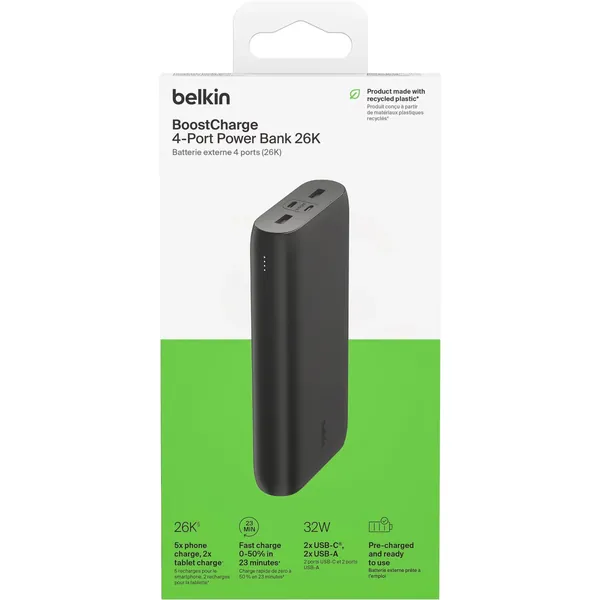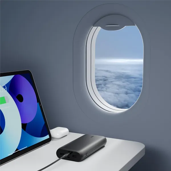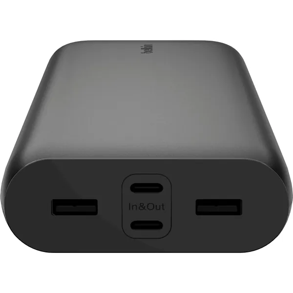 Charge smartphones, tablets and other PD-enabled devices quickly and safely with this pre-charged, ready-to-use 4-Port Power Bank. Two USB-C (20W max combined output) and two USB-A (12W max combined output) ports allow charging of 4 devices simultaneously.