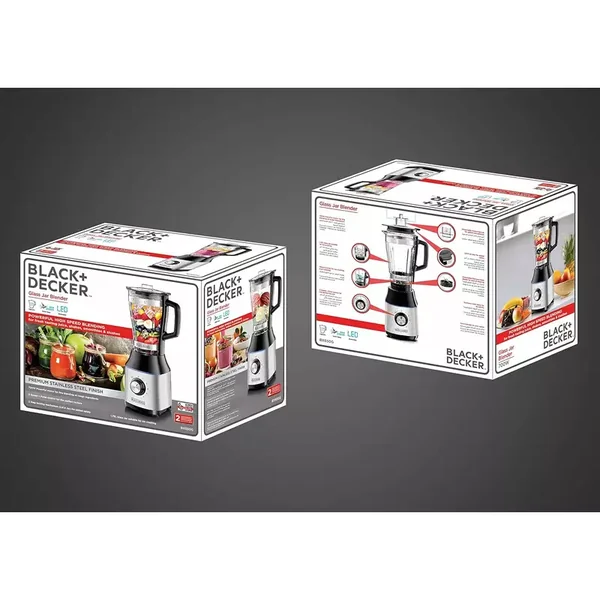 The Black & Decker Glass Jar Blender BX650G-B5 combines powerful 700W performance with elegant design. This high-performance blender features a durable 1.5L glass jar, multiple speed settings with pulse function, and robust ice-crushing capability, making it an ideal and stylish addition to any modern kitchen.