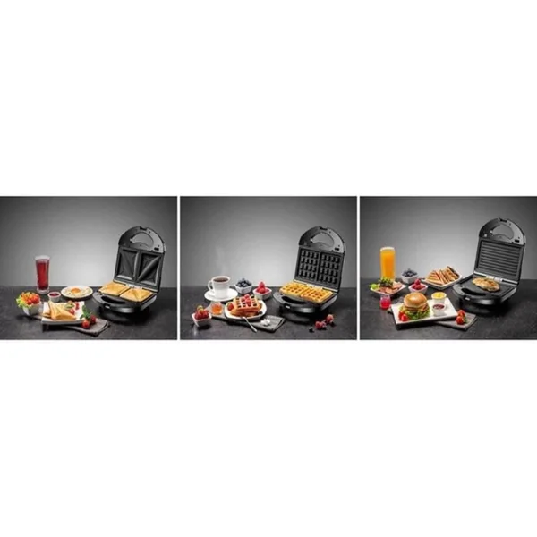 - 3-in-1 Interchangeable Plates: Switch seamlessly between grill, waffle, and sandwich plates for versatile meal preparation.