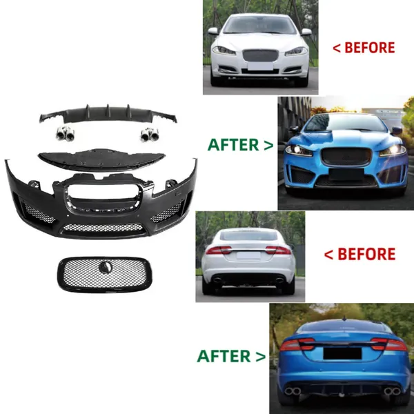 COMPATIBLE WITH JAGUAR XF XFS 2011-2015 BODYKIT UPGRADE TO XFR XFR-S STYLE BODYKIT FRONT REAR LIP DIFFUSER EXHAUST TIP SPLITTER GRILL