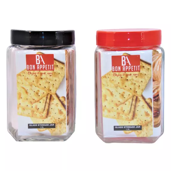 Buy Bon-Appetit Glass Jar 1.5L Screw Red Lid Online at Nidadanish.com Tanzania Online Shop Specifications: Model - HM-BA102 Size - 1.5L Perfect for whole grains, dry food, cereal, beans, nuts, lentils, flour, powder, sugar, coffee bean, or tea. Absolutely a good storage accessory for households. Sleek design Material: Glass Color: Red