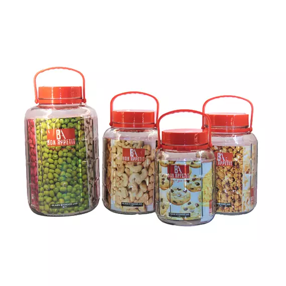 Description Your kitchen ain’t complete without this beautiful glass storage jars. Perfect for storing spices,and any other kitchen needs. It’s clear glass so once can clearly see the contents. Makes your kitchen look Clean,tidy and organised. The lid is gold therefore adding a taste of color and glamour to your kitchen. You can easily stack them,easy to clean and dries very fast. The Bon Appetit Storage Jar Screw lid is durable and practical. It is suitable for home-canning including bottling fruits, pickles, jams and chutneys. It is also ideal for storing dry food stuffs, such as rice, sugar, flour, lentils and more. This jar is easy to use and simple to clean. These clear glass jars complement and style up any kitchen counter top, cabinet or drawer with their elegant, classic design. Beautifully store your pasta, beans, rice and all kinds of grains. Keep your cookies, candies and all your goodies in stylish reserve.