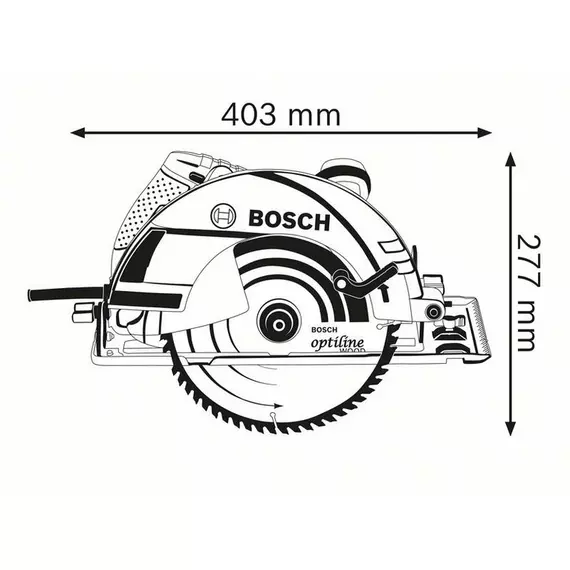 Bosch Circular Saw 2050W GKS 9 The most powerful circular saw in its class! Powerful motor with 2.050 W power input for a fast work rate Robust design for long-lasting operation in various kinds of applications Double the overload lifetime of the current GKS 235 Technical Data Rated input power: 2,050 W Saw blade diameter: 235 mm No-load speed: 5,300 rpm Weight: 7.6 kg Baseplate: 383 x 170 mm Saw blade bore diameter: 25 mm Max. cutting capacity in wood (90°): 85 mm Max. cutting capacity in wood (45°): 65 mm