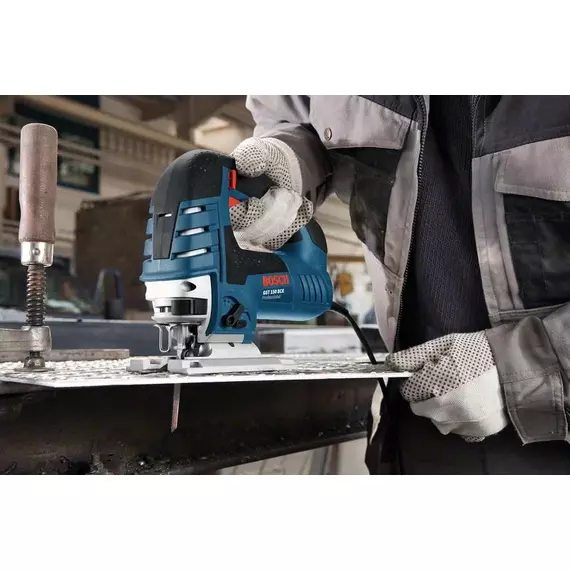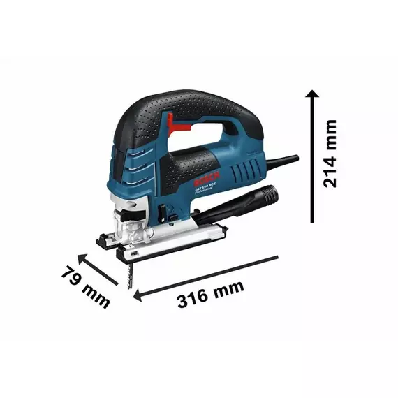 Features Robust and powerful with an all metal gearbox for durability, the GST150 will cut up to 150mm in depth Fitted with a 4 stage pendulum, constant electronics as well as variable speed trigger and speed dial, you have full control whatever the material you are cutting Giving high cutting precision with a saw blade clamp system, blade changing is fast with the Bosch SDS keyless lever system The aluminium sole plate is robust and bend-resistant for the toughest jobs; a dust blower keeps the blade cut line free of sawdust Fitted with a removable dust extraction port for connection to a vacuum Pendulum stroke adjustment Dust extraction Bosch SDS System Electronic Constant Electronic Dust Special system components Technical data Rated Power Input: 780 W Weight: 2.7 kg Cable Length: 4 m Stroke Height: 26 mm Blade Fitting: T-Shank (Tool-less) Cutting Depth in Wood: 150 mm Cutting Depth in Aluminium: 20 mm Cutting Depth in Non-Alloyed Steel: 10 mm Total vibration values (Sawing wood) Vibration emission value ah :7.5 m/s² Uncertainty K: 1.5 m/s² Total vibration values (Sawing sheet metal) Vibration emission value ah: 4 m/s² Uncertainty K: 1.5 m/s² Cutting depth Cutting depth in wood: 150 mm Cutting depth in aluminium: 20 mm Cutting depth in non-alloyed steel:10 mm Noise/vibration information Sound pressure level:83 dB(A) Sound power level:94 dB(A) Uncertainty K:5 dB Sawing wood Vibration emission value ah7.5 m/s: Uncertainty K:1.5 m/s Sawing sheet metal Vibration emission value ah4 m/s: Uncertainty K:1.5 m/s