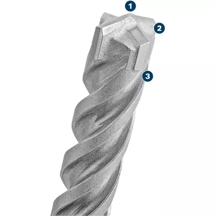 Bosch SDS-Plus-5X Drill Bit 18mm x 250mm The Bosch 2608836632 18mm x 250mm SDS-Plus-5X hammer drill bit offers highly efficient drilling in masonry, concrete and reinforced concrete . It’s compatible with all rotary hammer drills with an SDS-Plus chuck. ‘Turn-angle’ head and large, short dust removal channels within the 4-flute design provide fast dust removal for increased drilling speeds and reduced wear - s lice through rebar quickly! Centring tip guides drilling from the start for efficient work and exact hole diameters (prevents wandering which can falsify the hole diameter) Geometrical form of the 4-cutter head prevents jamming and breakage for optimal results Proof of quality : this Bosch SDS-Plus-5X hammer drill bit bears the test mark of the PGM Masonry Drill Bit Association Board, guaranteeing compliance with tight tolerances, exact drilling and the firm hold of fixings