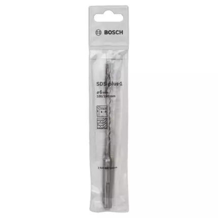 Bosch Hammer Drill Bit SDS Plus 6 x 100 x 160 M 2608680263 SDS max-7 Drill Bit is ideal for use at the highest drilling speeds SDS plus-1 Drill Bit is optimised for drilling in concrete 2-cutter Tungsten Carbide plate makes the bit extra tough 2-flute U-shape flute design provides effective dust removal and standard lifetime Fits all SDS plus rotary hammer drills. Diameter (D) mm: 6 Working length (L1) mm: 100 Total length (L2) mm: 160