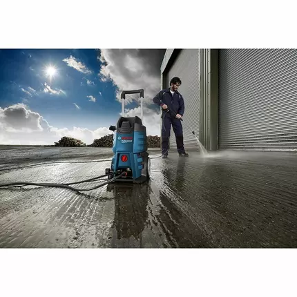 Bosch High Pressure Cleaner 3m 185 Bar GHP 5-75 X Powerful and versatile: Compact, durable high-pressure washer with brass pump and practical hose reel High cleaning power: Brass pump with stainless steel pistons producing a combination of high flow and pressure resulting in high cleaning power Durable: Steel-reinforced rubber hose with large rubber wheels designed for rugged use on jobsites. Durable brass water connections Convenient: Metal telescopic handle for high mobility. Convenient and space-saving hose reel Technical Details: Max. pressure: 185 bar Operating pressure: 140 bar Rated input power: 2,600 W Max. inlet temperature: 50 °C Cable length: 5 m Hose length: 10 m Material (hose): Steel reinforced Weight (without accessories): 26.8 kg Rated flow rate: 560 l/h Max. flow rate: 570 l/h Pump system: Wobble plate Pistons: Triple stainless steel Motor type: Induction
