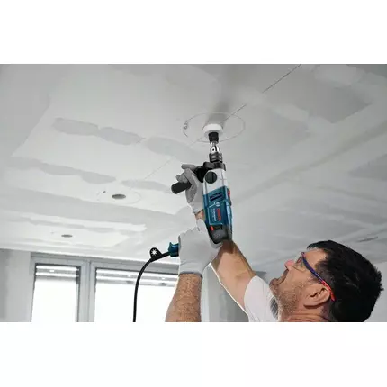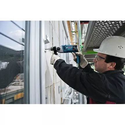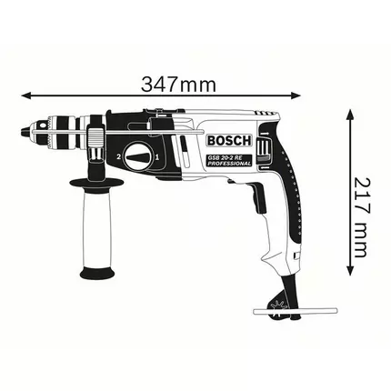 Bosch Percussion Drill 13mm 800W GSB 20-2 RE Powerful, dual-speed impact drill with superior durability and performance Increased robustness with pot stacked metal gear housing design Powerful 800 W motor for enhanced performance and durability 2 gear functionality for dual speed coupled with dual mode impact shifter for increased versatility Technical Details: Rated input power: 800 W Weight: 2.5 kg No-load speed, 1st gear: 0 – 1,100 rpm No-load speed, 2nd gear: 3,000 rpm Impact rate at no-load speed: 0 – 48,000 bpm Rated speed: 740 rpm Rated torque: 5.2 / 2.0 Nm Chuck capacity, min./max.: 1.5 – 13 mm Drilling range Drilling diameter in wood: 25 / 40 mm Drilling diameter in concrete: 16 / 20 mm Drilling diameter in steel: 8 / 13 mm Drilling diameter in masonry: 22 mm