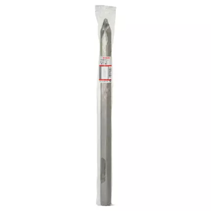Bosch Pointed Chisel 28X520 mm 1618600019 Pointed Chisel has a pointed tip for precise adjustment work in concrete Intended for use in concrete and brick for mortising, demolition, and adjustment work With 28 mm hex shank for breakers Materials: Concrete, Concrete building block, Lime and sand bricks, Solid brick Shank, shape: Hexagon Total length (mm): 520 Choose a pack size: 1 Pcs