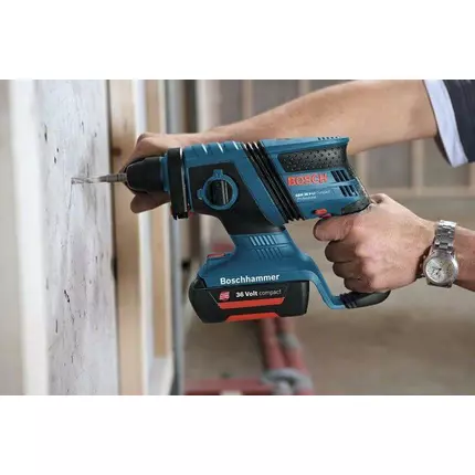 Specification: As powerful as corded: up to 100 drilled holes (6 x 40 mm in concrete) with one battery charge, ideal for indoor use With a weight of only 2.9 kg, it is ideally suitable for overhead work Bosch Vibration Control for fatigue-free working Additional data Battery voltage:36.0 V Impact energy (according to EPTA 05/2016):1.8 J Impact rate at rated speed:0 – 4,850 bpm Rated speed:0 – 1,500 rpm Tool holder:SDS plus Drilling range Drilling dia. in concrete with hammer drill bits:4 – 18 mm Opt. app. range in concrete with hammer drill bits:4 mm Max. drilling diameter in metal:13 mm Max. drilling diameter in wood:30 mm Total vibration values (Hammer drilling in concrete) Vibration emission value ah:16 m/s² Uncertainty K:1.5 m/s² Noise/vibration information Sound pressure level:102 dB(A) Sound power level:91 dB(A) Uncertainty K:3 dB Hammer drilling in concrete Vibration emission value ah:16 m/s² Uncertainty K:1.5 m/s²
