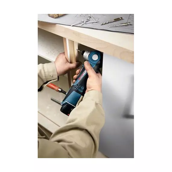 Specifications: Extremely versatile, above all in tight spaces and hard-to-reach areas, thanks to the 5 head position settings: 0°/22.5°/45°/67.5°/90° Very compact: 9.5 cm adjustable head, the smallest on the market 7-stage electronic torque adjustment + drill setting Unique Bosch Premium lithium-ion technology for 400% longer lifetime and unbeatable battery runtime Cordless angle driver GWI 10.8 V-LI Professional The most compact lithium-ion cordless angle driver Extremely versatile, above all in tight spaces and hard-to-reach areas, thanks to the 5 head position settings: 0°/22.5°/45°/67.5°/90° Very compact: 9.5 cm adjustable head, the smallest on the market 7-stage electronic torque adjustment + drill setting Bosch Electronic Cell Protection (ECP): protects the battery against overload, overheating and total discharge Motor brake for precise work when driving rows of screws Practical hook for storage and accessibility Bosch Hyper Charge: due to the rapid charging process, the batteries are charged to 75% after just half of the charge time No memory effect: the battery can be charged regardless of the charging state at any time, without damaging the cells Technical Data Torque, max. (hard screwdriving applications): 13 Nm Torque, max. (soft screwdriving applications): 5 Nm No-load speed: 0 – 585 rpm Battery type :Lithium-ion Battery voltage: 10,8 V Battery capacity :1,3 Ah Weight incl. battery: 1,1 kg Charging time, approx. :30 min Torque settings: 7+1 Length :95,0 mm Height: 295,0 mm Drilling diameter Max. drilling diameter in aluminium: 8 mm Max. drilling diameter in wood :10 mm Max. drilling diameter in steel :8 mm Screw diameter Max. screw diameter: 5 mm Functions Forward/reverse operation Electronic Softgrip
