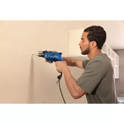 Features: Accessible Bosch quality: upgrade your no-name tool to a branded tool from Bosch without breaking the wallet. Performance: powerful 570 Watt motor enables you to drill holes up to Ø10 mm in steel and Ø13 mm in masonry with ease. Enhanced durability: reliable and accessible impact drill with durable metal chuck. Specifications: Rated input power*:570 W Weight 1.7:kg No-load speed:0 – 3,000 rpm Power output:300 W Rated torque:1.4 Nm Chuck capacity, min./max.:1.5 – 13 mm Impact rate at no-load speed:48,000 – bpm Drilling range Drilling diameter in concrete:13 mm Drilling diameter in wood*:25 mm Drilling diameter in steel;10 mm Drilling dia. in brick, limestone:13 mm Drilling diameter in masonry*:13 mm