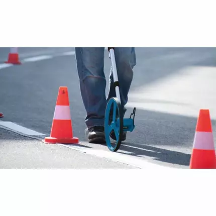 Features: Ergonomic pistol grip and lightweight aluminium construction for ease of use Telescopic shaft with continuously variable height adjustment for more flexibility and comfort Die-cast aluminium wheel with robust rubber tread for use on any surface Technical data Weight :1.4 kg Wheel diameter (circumference) :318.5 mm (1 m) Max. measured value: 9999.99 m Handle Telescopic handle Material Aluminium Measurement accuracy :1 dm/100 m