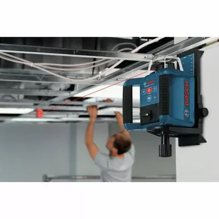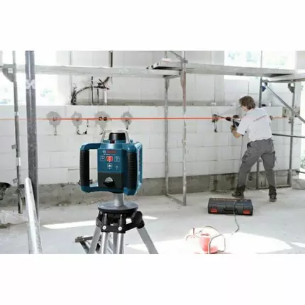 Features: Easy handling with horizontal and vertical self-levelling Easy to operate thanks to one button per function, and self-explanatory display Easy to set up in both the horizontal and vertical modes due to automatic self-levelling of 8% (± 5°) The shock warning function, which can be switched on and off, prevents levelling errors in the event of shocks and vibrations Technical data Working range: 60 m Working range with receiver: 300 m (Diameter) Accuracy: ± 0.1 mm/m Laser diode: 635 nm, < 5> Operating temperature, from: -10 °C Operating temperature, up to: 50 °C Operating temperature: -10 – 50 °C Storage temperature, from: -20 °C Storage temperature, up to: 70 °C Storage temperature: -20 – 70 °C Laser class: 3R Working range with receiver, value: 300 m Working range with receiver, appendage: (Diameter) Working range without receiver, value: 60 m Working range without receiver, appendage: (Diameter) Working range without receiver: 60 m (Diameter) Self-levelling range: ± 5° (8%) Levelling time: 15 s Dust and splash protection: IP 54 Rotation speed: 150, 300, 600 rpm Power supply: 2 x 1.2 V HR20 (D) (9 Ah), 2 x 1.5 V LR20 (D) Operating time (max.): Rechargeable batteries (NiMH) 30 h Tripod thread: 5/8" Weight, approx.: 1.8 kg Colour of laser line: Red
