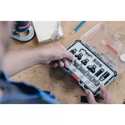 Value for money Carbide cutting edges of the bits ensure high lifetime. Easy & Safe Pick System No risk of injuries while taking out the bit due to unique case construction. The bit can be taken out easy & safe from the shank. Interface Fits all tools which are available for 6mm, 8mm and ¼” inch clamping collet. Features: 6-piece edge and edge cutters set for fine work in soft and hard wood as well as wood composites. Perfect choice for all carpenters, carpenters, interior decorators and other builders Long service life due to carbide cutting edges and manufactured according to safety standards DIN EN-847 For routers with 8 mm tool holder of all power tool brands Box contents: 2 x 51/55mm round cutter, 2 x 54/56mm chamfer cutter, 1 x 65mm flush cutter, 1 x 65mm flush profile cutter Specifications: Packaging type: Plastic packaging, cassette, with Euro hole Pack quantity: 6 Pcs Shank mm: 6 Item Weight: 1.91Kg Handle Material: Wood Usage: Cutters,Cutter Power Source: Hand Powered Measurement System: Metric Type, cutter: Round cutter, Round cutter, Chamfer milling cutter, Chamfer milling cutter, Flush-mount milling cutter, Flush profile milling cutter Total length (G) mm: 51,55,54,56,65 Working length (G) mm: 10,13,16,25 Diameter (D) mm: 19,25,35,13,16 Radius (R1) mm: 3,6 Angle degrees: 5,45 Product Dimensions: 8.35 x 5.43 x 1.91 inches