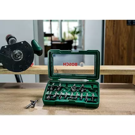 For practically any milling task is equipped in the best way: Compact Bosch Hartmetallfraser-Set for the manufacture of profiles and connections with hand-held routers. Form-fitting and high-quality carbide cutting, optimized cutting geometry and precision grinding. To profile: 3 round, 1 chamfer/flush cutter, 2 hollow throat milling cutter, 1 profile milling cutter, 1 V-groove milling cutter. For precise connections: 1 flush cutter, 1 flush-miller, 4-Miller, 1 zinc milling cutter. For routers with 8 mm-tool consumption of all electrical tool brands. In the attractive and clear storage case. Features 3 Round milling cutters Flush milling cutter Fore milling cutter Chamfer/flush milling cutter 2 hollow throat milling cutters 4 groove milling cutters (2-edged) Profile milling cutter V-groove milling cutter Zinc milling cutter. Specifications: Length: 223.5mm Content: 1pc(s) Factory colour: Black Material: Carbide metal Rack size: 483 mm (19") Shank Ø: 8mm Product type: Milling set Product Dimensions: 45.01 x 40.01 x 24.99 cm; 500 g Weight: 500g Material: Metal