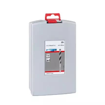 Bosch Set Of Twist Drills Pointteq Hss G 1-13mm 2608577352 Self-centering tip prevents wandering, making quick and easy drilling starts possible Increased drilling rate generates less heat and wear Materials Steel Cast iron Fast Drilling In Metal HSS Twist Drill Bit PointTeQ enables fast drilling in metal due to the PointTeQ tip design Increased drilling rate generates less heat and wear PointTeQ tip design remains sharp and ensures continuous durability Low risk of breakage due to the highly elastic body, black-oxide coated flute; DIN 338, Type N, 135-degree tip There is a low risk of breakage, especially for drill bits below 6 mm in diameter as the bit is manufactured to have a highly elastic body. Its black-oxide-coated flute provides fast chip removal. The HSS Twist Drill Bit PointTeQ is manufactured to DIN 338. The drill bit is Type N (flute angle) with a tip of 135 degrees. It has a cylindrical shank system (shank equal to drill bit diameter) and is intended for use in drill stands and drill drivers.
