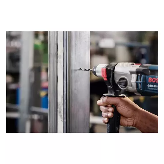 Bosch Twist Drill Pointteq Hss g 12.0mm 2608577288 HSS Twist Drill Bit PointTeQ enables fast drilling in metal due to the PointTeQ tip design Self-centering tip prevents wandering, making quick and easy drilling starts possible Increased drilling rate generates less heat and wear The cylindrical shank is compatible with three-jaw drill chucks. Materials Steel Cast iron Fast Drilling In Metal HSS Twist Drill Bit PointTeQ enables fast drilling in metal due to the PointTeQ tip design Increased drilling rate generates less heat and wear PointTeQ tip design remains sharp and ensures continuous durability Low risk of breakage due to the highly elastic body, black-oxide coated flute; DIN 338, Type N, 135-degree tip There is a low risk of breakage, especially for drill bits below 6 mm in diameter as the bit is manufactured to have a highly elastic body. Its black-oxide-coated flute provides fast chip removal. The HSS Twist Drill Bit PointTeQ is manufactured to DIN 338. The drill bit is Type N (flute angle) with a tip of 135 degrees. It has a cylindrical shank system and is intended for use in drill stands and drill drivers.